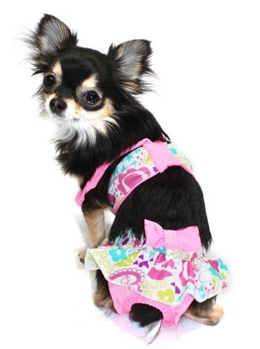 If you prefer a one-piece, consider putting your precious pooch in a Zebra Bathing Suit ($24-$28). Featuring a light pink trim, it uses a spandex blend with rear leg straps to keep it in place. This suit comes in sizes for teacup to medium dogs.