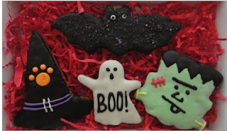 Take for example our Frankenstein Treat Gift Box ($18) filled with four spooky good large treats made with peanut butter dough, coated with yogurt and decorated with human grade sprinkles.