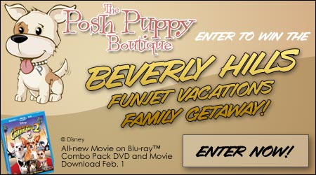 less than a week away for the release of Beverly Hills Chiahuahua 2 to not only get the new video to be released on Tuesday, Feb. 1st - but you can join in on the Posh Puppy Boutique Sweepstakes! Not only do you enter to win a great vacation to LA but you can be entered to win the Posh Puppy Pack.You could win great items for your dog from the top dog designers around!