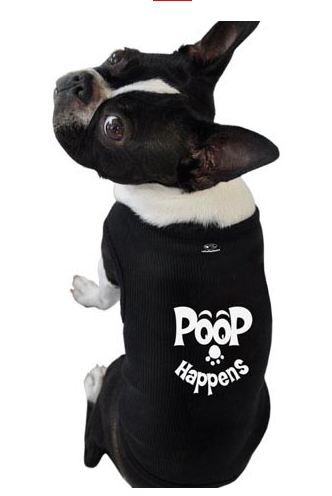 Santa may bust a gut when he sees your dog wearing our Poop Happens Tank ($30), which features white lettering on a black background. Made with stretchy cotton in the USA, it runs on the slim slide. Sizes range from extra-small to extra-large.