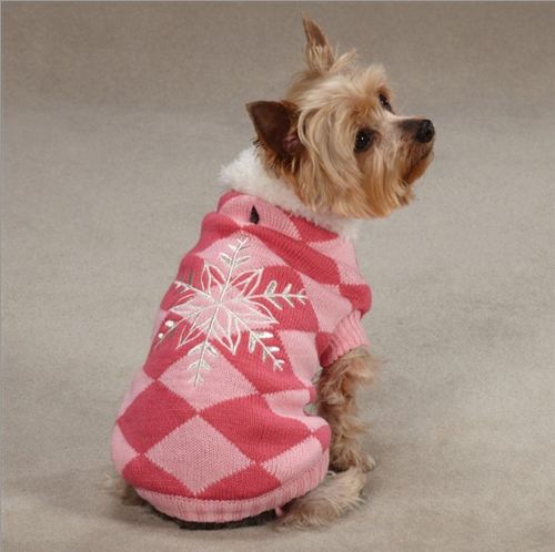 | This blue Snowflake Sweater is designed for smaller dogs. |