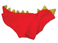Hooded red dragon sweatshirt costume featuring golden plates from head to tail. 100% cotton with lead hole.