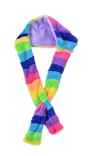 This super-soft rainbow head scarf can be worn from cool Spring to Fall days, and also adds bright color to cold Wintery days. Its unique design allows the scarf to be worn over your dog’s head to warm up his ears, as well as wrapped around her neck. Perfect for pups who need a little something to keep the chill away, but don’t like to wear sweaters. Or can be layered with a favorite sweater. Available in 4 sizes: XXS-XS, XS-S, S-M, M-L.