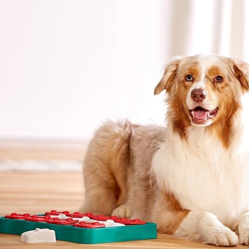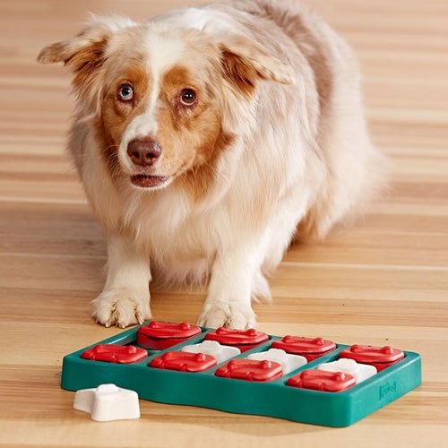 Nina Ottosson Dog BrickComplete with 3 different treat feeding features, the Nina Ottosson Dog Brick is made with easy open-close flip compartments to hide treats in, and comes with separate, removable bone puzzle pieces that offer an even more interesting challenge to seeking and eating treats! Your dog can easily slide and move each flip compartment to reveal even more hidden treats.