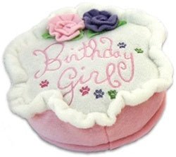 A great way to make the Birthday girl feel even more special. Fun squeaky cake toy with pretty " icing" details. Cake is approximately 5" in diameter.
