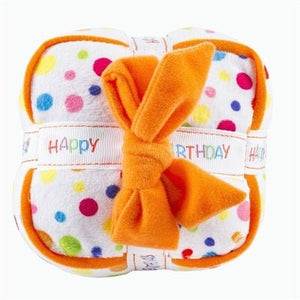Check out our brand new Happy Birthday Gift Box toy! Our Birthday Gift Box is made of bright colored soft plush material with a fun squeaker inside. Birthday Gift Box available in one size. Measures 4.25"L x 4.25"W x 2.5"H.