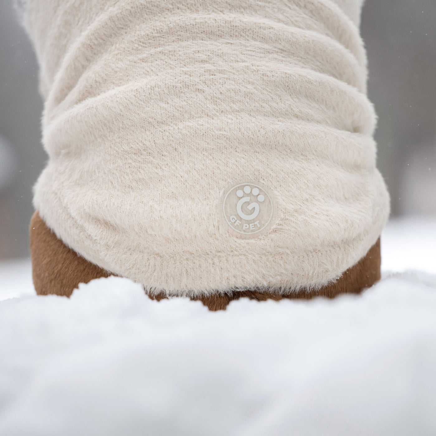 The GF PET Fuzzy Sweater is our snuggliest sweater ever! With just the right amount of feathery fuzz at the perfect weight, this exquisite sweater seamlessly blends snuggly softness with high-style. GF PET signature sculpted body shape, with a high turtleneck and quality arm holes, offers a super comfy fit for both boy and girl doggies. From indoor lounging to outdoor strolls, elevate your pet's style with this premium and original fuzzy statement of beauty!