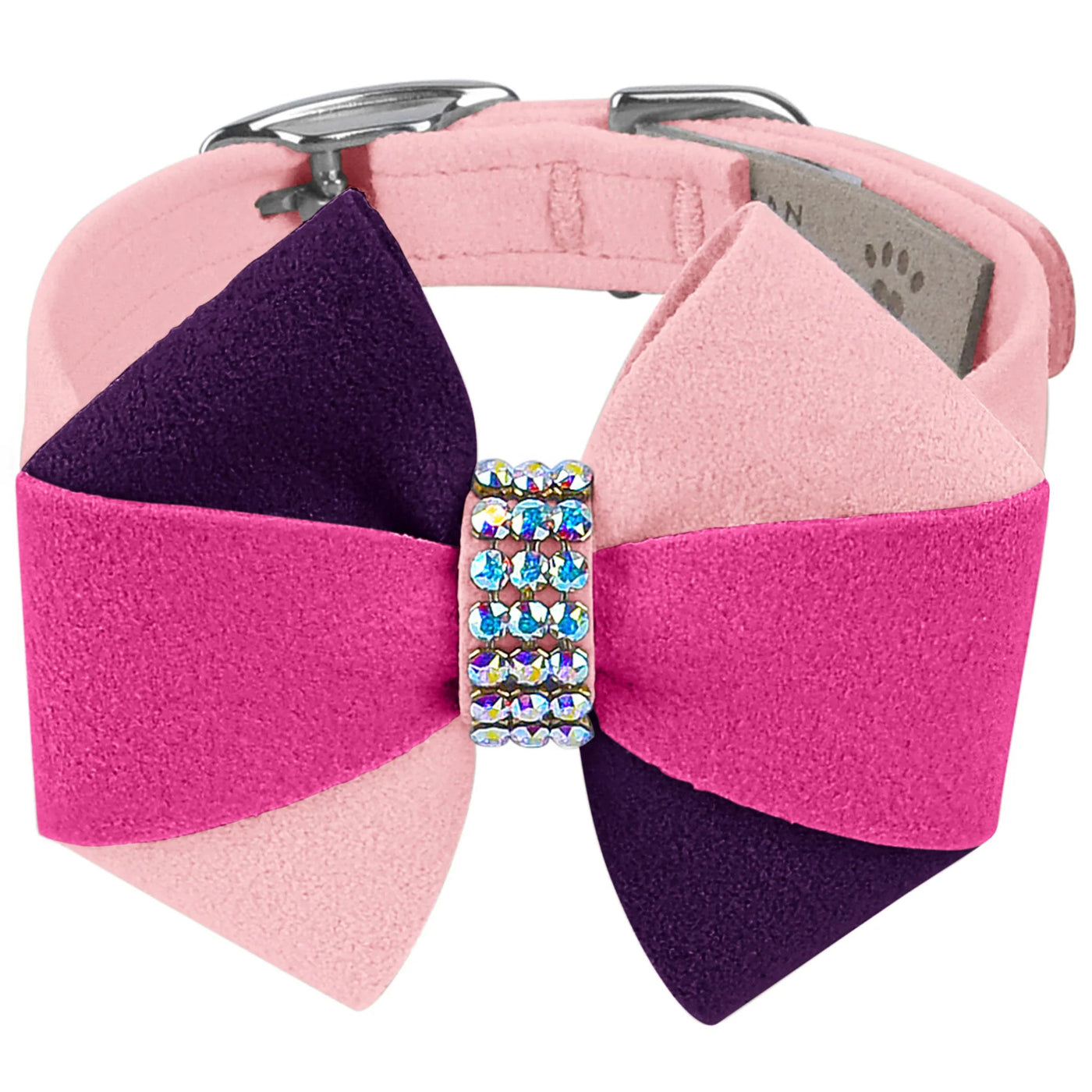 This dog collar has a premium look and feel while being easy for you to maintain. Made from Ultrasuede® fabric with the soft texture and feel of premium suede. Ultrasuede® offers the highest grade of durability, making this collar resistant to stains and discoloration. It is even machine washable! The collar width is ½”. We recommend your dog should always be walked with a harness. Our collars are designed for ID tags, charms, and for decoration, they are NOT designed for pulling dogs. Manufactured in the USA.