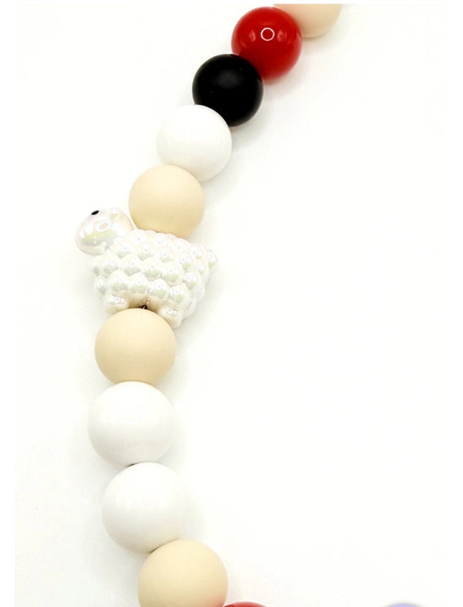 Handcrafted features include: - BPA free 15mm Silicone beads - 304 Vinyl Coated Stainless Steel Aircraft Wire - Stainless Steel Swivel Lock and Ring - Waterproof, Easy to Clean!