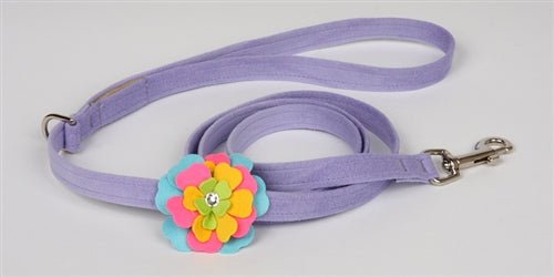 The Fantasy Flower Step In Harness is a fan Favorite. The soft, inviting color combinations make our signature Tinkie's Garden flower blossom to a new level of inviting beauty. The harness fastens by a single quick-release buckle located above the dogs’ shoulders and is cut well below the dogs’ neck so the pulling is across the shoulders and not the neck. Easy for you to maintain, this harness is made from genuine commercial upholstery grade Ultrasuede® fabric that we import from Japan. This soft, comfortable fabric is breathable, washable and colorfast.