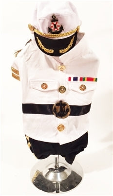 Command the Seas in Style – Deluxe Admiral Dog CostumeSet sail in high fashion with our Deluxe Admiral Dog Costume, crafted with exceptional details and premium quality for pups who deserve only the best. This impressive sailor’s uniform is adorned with gold ribbon trim, shiny embossed anchor buttons, and an authentic 3-D anchor buckle, creating a regal and official look that’s perfect for Halloween, themed events, or nautical photo ops.