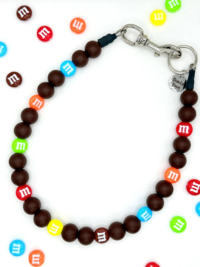 Inspired by the candy that never goes out of style, Melts in Style beaded dog collar brings those classic candy-coated colors to life! A smooth blend of chocolatey browns and playful pops of color, this collar is a sweet statement piece that’s made for everyday adventures. Handcrafted features include: BPA-free 15mm silicone beads 16mm and 14mm Acrylic Beads Lead, phthalate and cadmium free Stainless steel swivel lock and "O" ring on collars Collars made with vinyl-coated aircraft wire