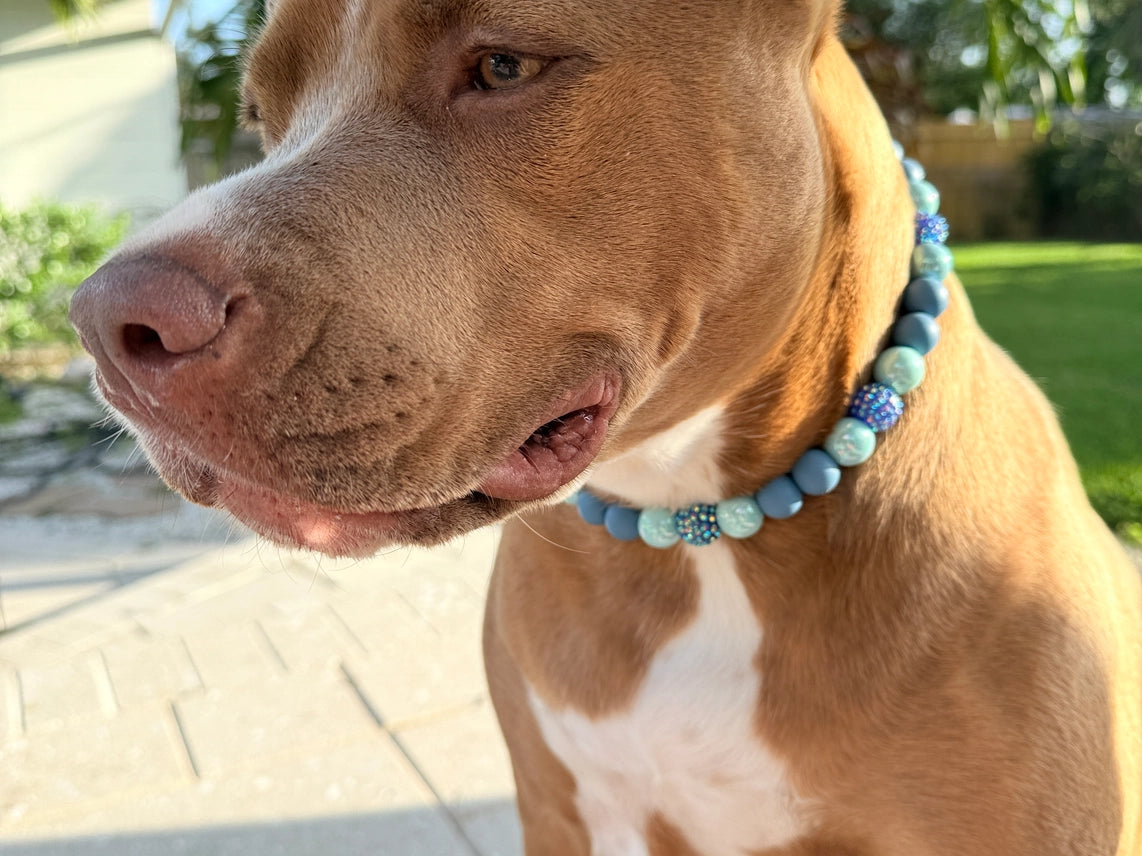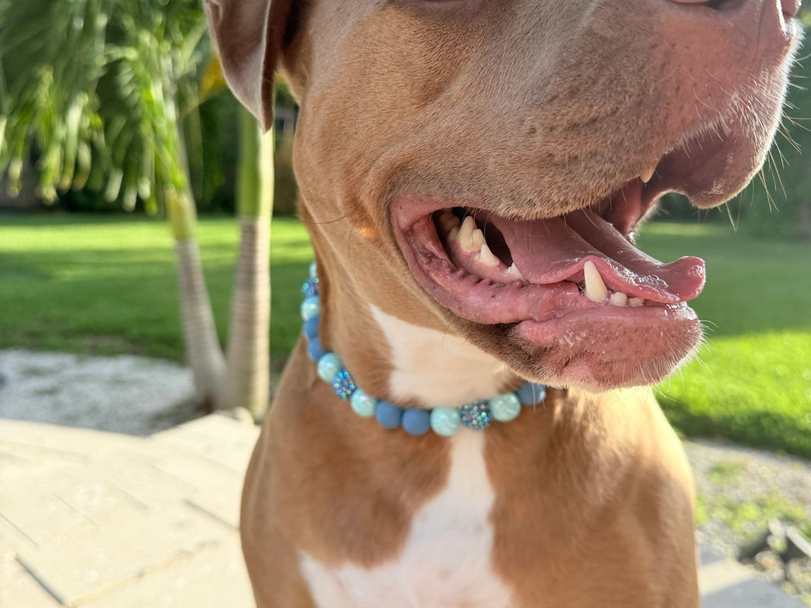 Celebrate the joy of Hanukkah with the Spin and Shine beaded dog collar! Featuring rich blue tones, sparkling beads, and a playful shimmer, this piece captures the magic of dreidel spins and the glow of holiday lights.