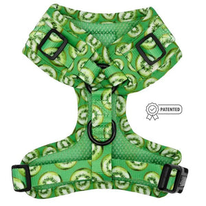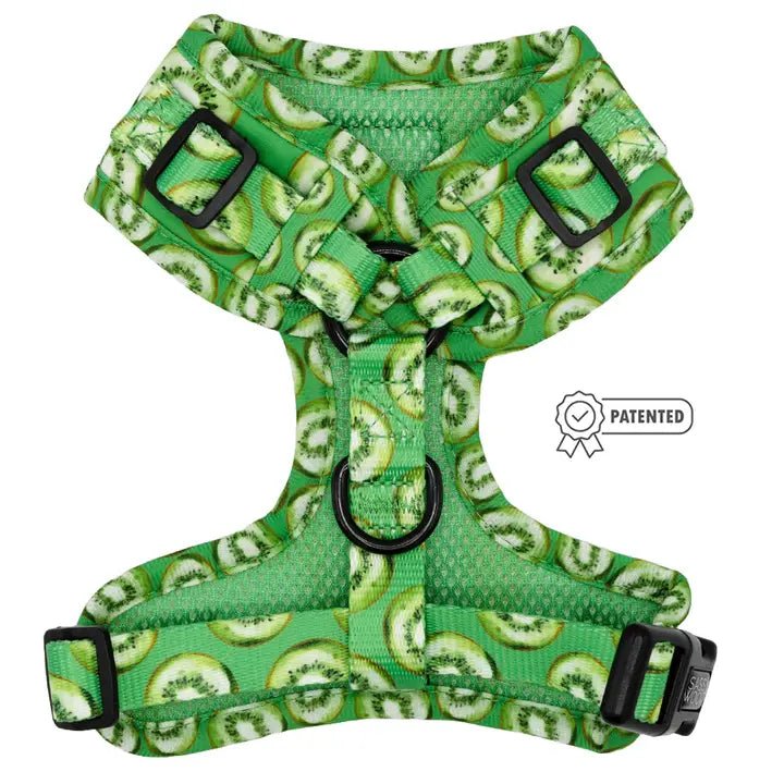 Our original patented design features: Two D-rings: One D-ring on back for leash attachment Another versatile front D-ring that can be used for "no pull" or tags Custom printed neoprene fabric with breathable mesh