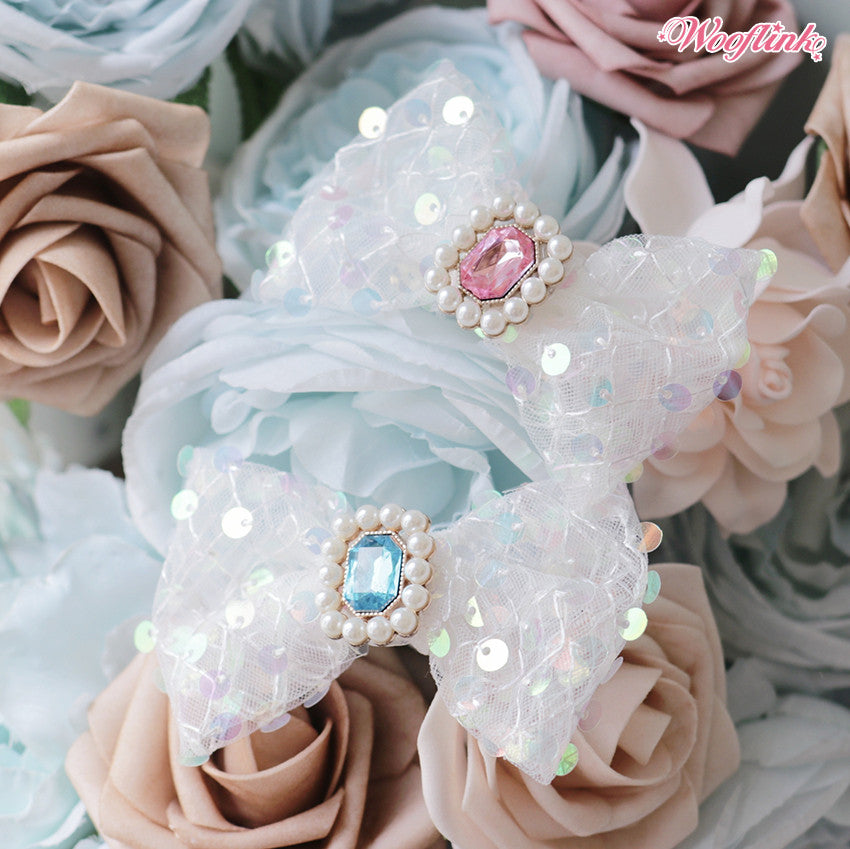 Lovely mesh bow with iridescent sequins & luxurious charm ♥