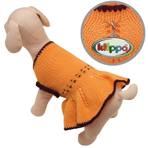 A cute hand knitted sweater dress with rows of dots along the waist line. Flared sleeve openings adds the elegant look to the dress! A small D-Ring attached above the first snap button to add on a "Klippo" charm or ID tag!