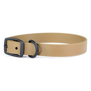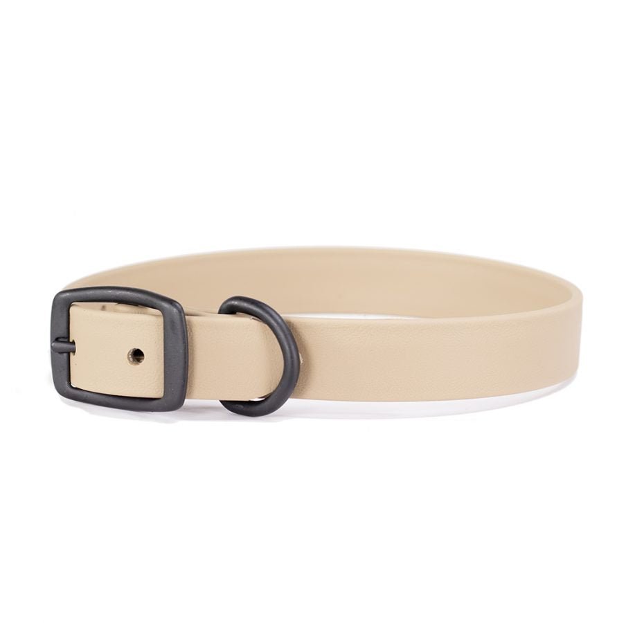 Made with Genuine USA-Made Biothane. This collar is exceptionally stain and odor resistant. Will not stretch or tear. Will hold up to being dragged through the mud time after time.