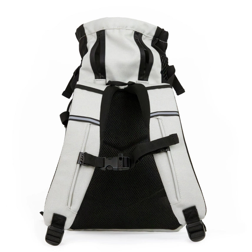 The Plus 2 features a multi-function removable storage pack great for gear, treats, or other necessities. The storage also acts as additional support, making your dog’s journey even more comfortable. Thicker shoulder straps and padded back panel allow for more weight and strenuous activities. The Plus 2 is our most complete carrier for small to medium sized dogs and fits dog owners small to large in build.