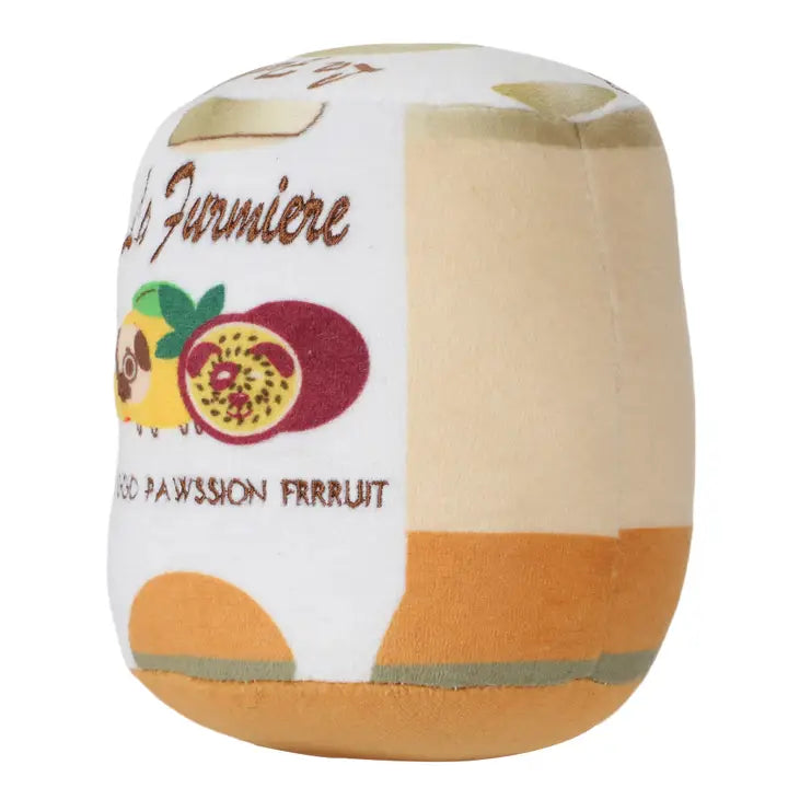 The La Furmiere is a charming plush yogurt parody toy for small to medium breeds. Made with soft fabric, embroidery, and a hidden squeaker, it measures 5"x4"x4" and is perfect for fetching, chewing, or cuddling. Lightweight and durable, it adds playful fun to any toy collection. An ideal gift for pups who love style with their playtime.
