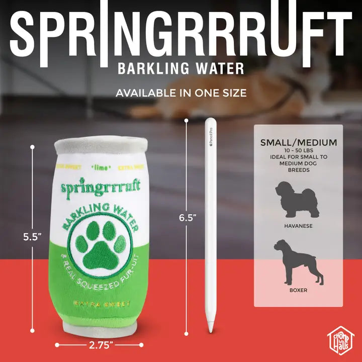 Bring a refreshing twist to playtime with this clever beverage parody plush toy. Sized at 5.5"x2.75" for small to medium dogs, it features soft fabric, embroidered details, and a hidden squeaker for interactive fun. Perfect for fetching, chewing, or carrying around, this lightweight and durable toy delivers laughs and engagement. A playful, gift-ready choice for any occasion.