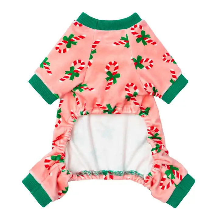 Cozy up in this velvet pajama made from 100% polyester, providing ultimate comfort for your furry friend. The Christmas design features a mix of festive prints and red/green stripes, perfect for adding some holiday cheer to your pet's winter wardrobe. Stay warm while enjoying all the holiday festivities with this stylish and playful pajama, suitable for any Christmas event from parties to walks to family photoshoots.