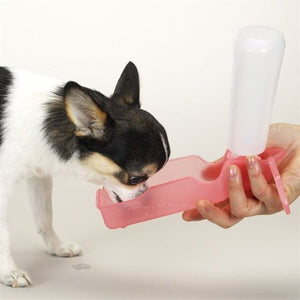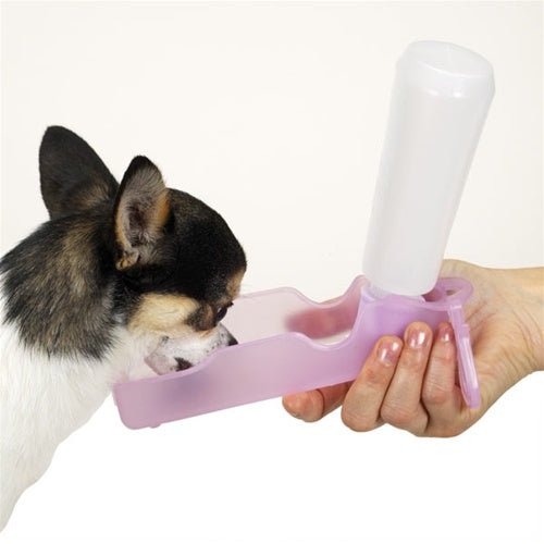 Easy-to-use, handheld design includes a plastic 9 oz water bottle and dispenser tray/cover. Simply snap the bottle upright into the tray and squeeze the bottle to dispense water into the tray. Includes convenient belt clip and carrying strap. Bottle folds into tray for easy portability when not in use.