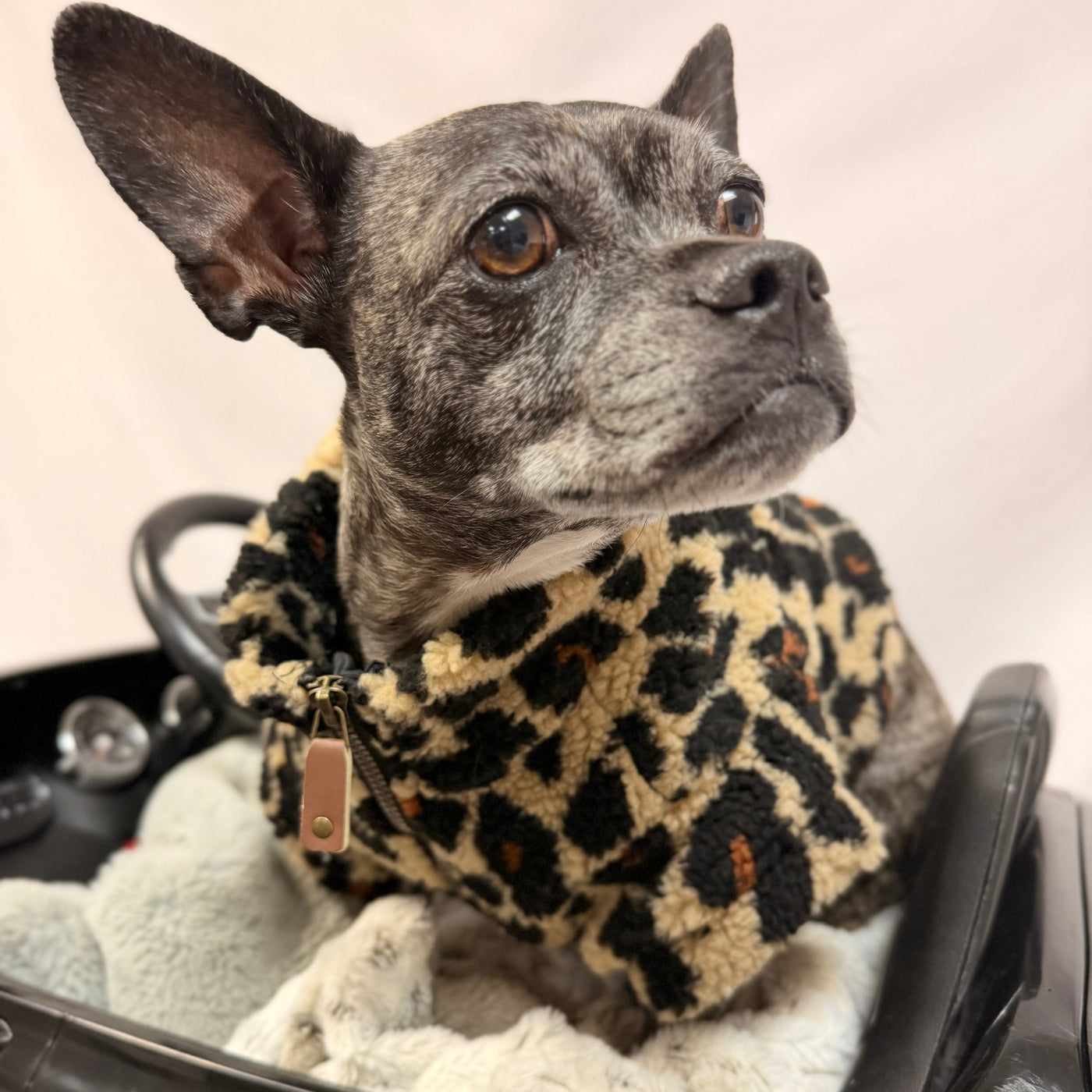 Made from supersoft sherpa fleece, this pullover features a sleek ¼ zip front with a faux leather zipper tab for that elevated, outdoorsy look. Whether it’s a chilly morning walk or lounging indoors, this fleece keeps your dog warm without sacrificing movement or style.