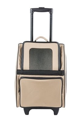 This selling carrier functions as a roller bag, backpack, and even as a car seat for your pet! Very functional and ideal for stress free travel with your pet. Roller bag functions include a retractable two stop handle and detachable roller wheels. Also comes with comfortable backpack straps that also detach. The Rio also allows for maximum ventilation and exposure, interior bedding for extra cushioning and comfort, an interior safety leash for added protection, front compartment with dual pockets for your own accessories, and an additional back pocket for laptop storage!