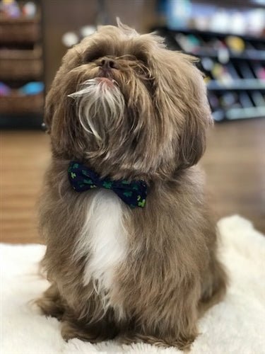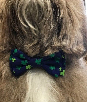 Bow ties for the dapper dog (or cat)! Easy to attach to or remove from any collar with a secure touch fastener strip on back. Available in size small and large. The Dog in the photo is wearing a small!