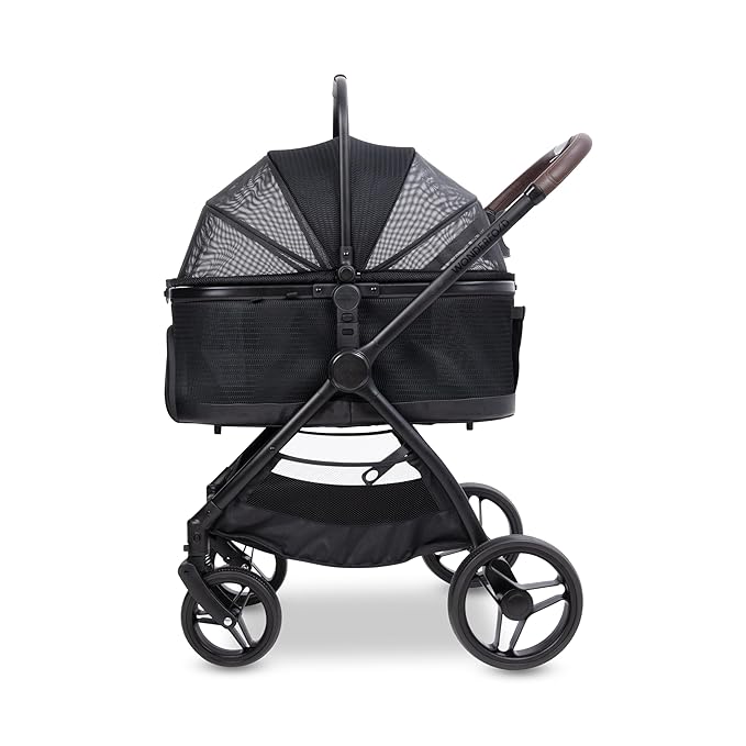 • Holds up to 180 lbs: Accommodates larger pets or multiple smaller pets, providing ample space and support.• Zippered Front and Rear Entrance: Offers easy access for pets and doubles as a ramp for smooth entry and exit.• Pet Harness Latches: Secures your pets safely in place, ensuring a comfortable and worry-free ride.• Rear Brake System: Provides safety and control during your stroll, allowing you to stop the stroller with ease.• Adjustable Faux Leather Handlebar: Customizable height and comfortable grip for a personalized strolling experience.• Mesh Top with Optional Window: Provides ventilation and visibility for your pet and can be stored in a pocket when not in use.• Front and Back Pockets: Convenient storage options for pet accessories and personal items