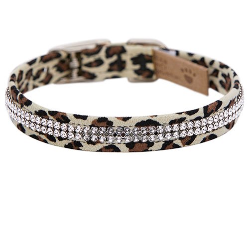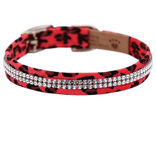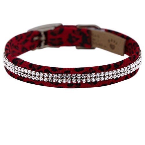 This collar is made from genuine upholstery grade Ultrasuede® fabric that we import from Japan. This soft, comfortable fabric is breathable, washable and colorfast. For the crystal, we use Swarovski Crystallized Components exclusively. As an assurance to both you and your customer, each item comes with an Ultrasuede® tag and a Made with CRYSTALIZED - Swarovski Elements hang tag that displays our registration number.