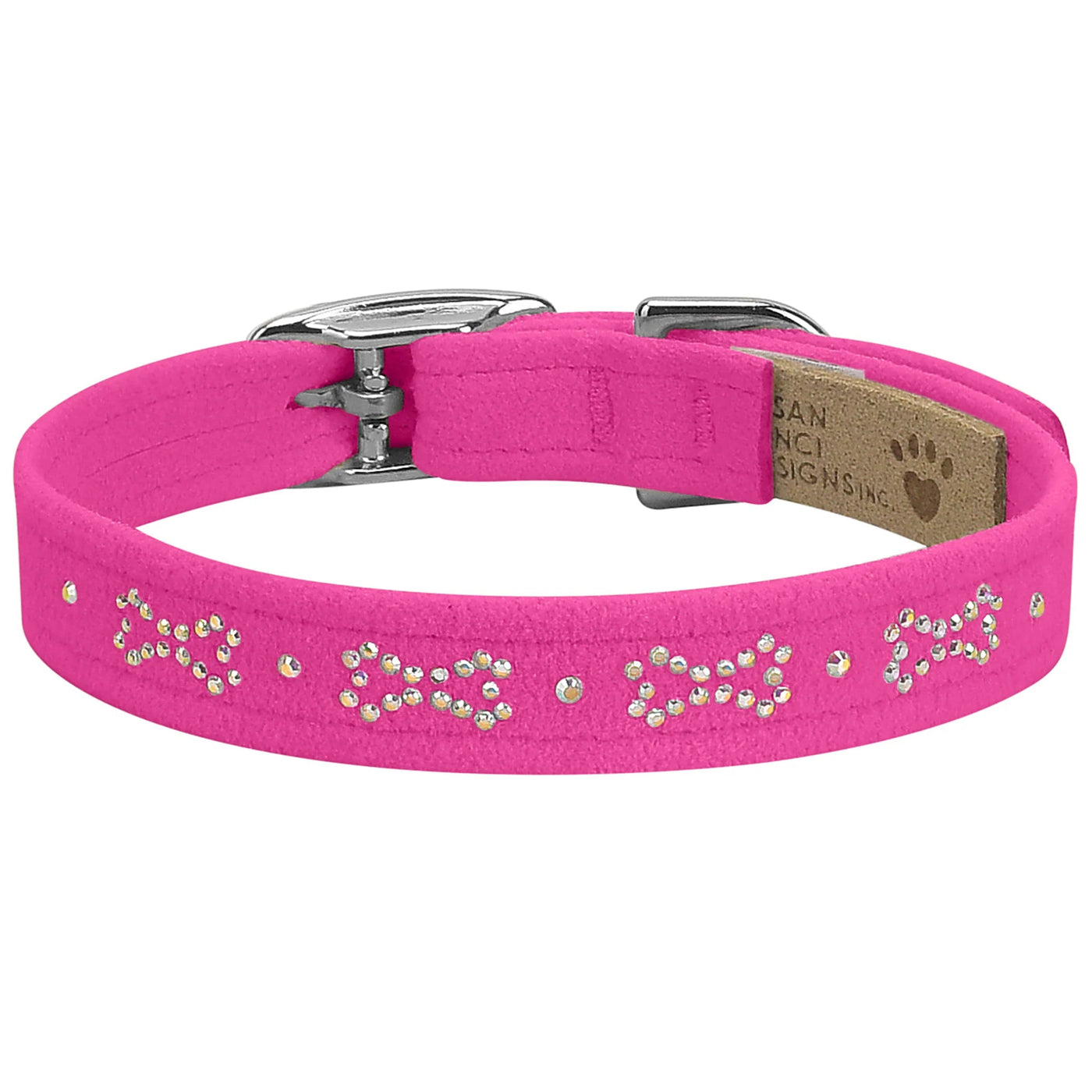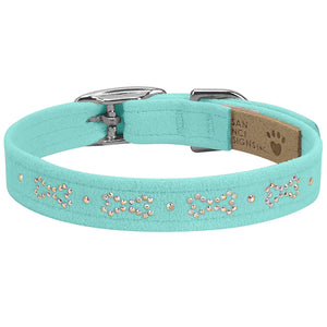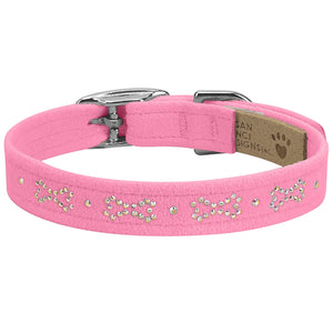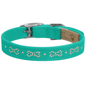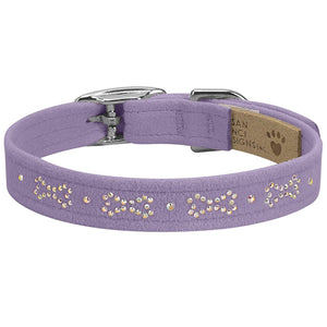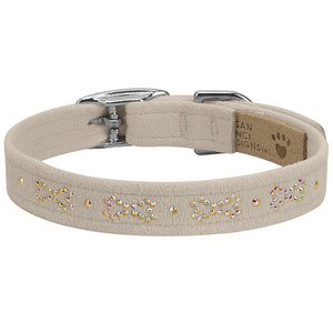 Our Crystal Paw Print embellishment is one of our original designs and over time, it has proven itself to be one of our best selling. The Swarovski crystal paw prints are an elegant accent without being too glitzy. It can even work for little boys. Like all of our designs, this 1/2 inch collar is made from genuine upholstery grade Ultrasuede® fabric that we import from Japan. This soft, comfortable fabric is breathable, washable and colorfast. For the crystal, we use Swarovski Crystallized Components exclusively. As an assurance to both you and your customer, each item comes with an Ultrasuede® tag and a “Made with CRYSTALIZED™ - Swarovski Elements” hang tag that displays our registration number.