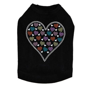 Heart with Multicolor Rhinestud Hearts dog tank for large and small dogs.