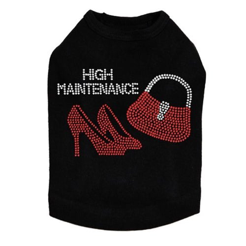 High Maintenance Red Heels & Purse rhinestone dog tank for large and small dogs.