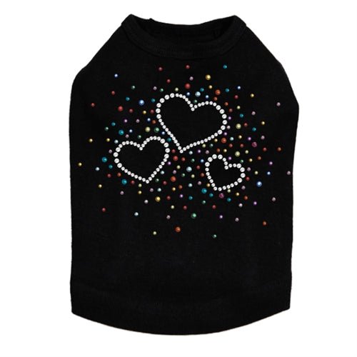 Three Hearts with Multicolored Studs rhinestone dog tank for large and small dogs.
