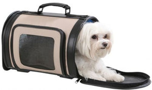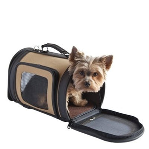 Front and side ventilation windows, adjustable padded shoulder strap that also can be used as a leash, non-collapsible, custom hardware, made in the USA, airline approved, detachable fur lined pad. This carrier is also equipped to be used as a kennel when traveling with your pet. Its a home ways from home!