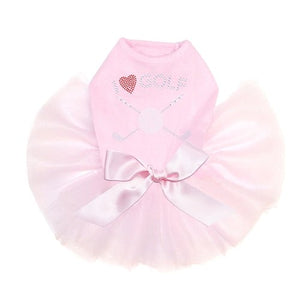 Please use the total length of your dog when ordering our dresses. Most of our dresses are adjustable in the chest and waist so it is often more important to have the correct length. If your dog's Length size is more than two Chest sizes different, please select the size in between. For example, a dog with a chest measurement of 11" (XXS) and a length measurement of 10" (S) would need to order a size XS.