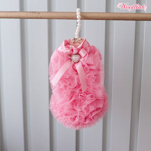 Candy Hearts Pink Denim Dog Jacket with Tutu