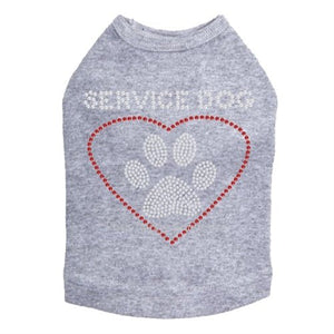 Service Dog rhinestone dog tank for large and small dogs.