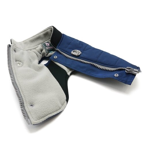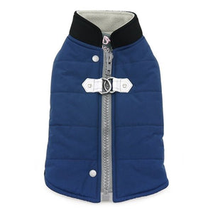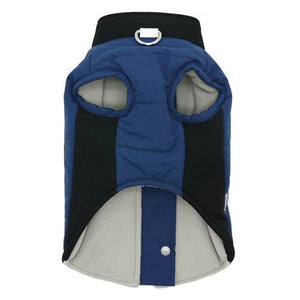 Modern stylish insulated top zipper closure coat with urban two-tone color style. Collar ring for name charm and name tag hanging. Size XS to XL has D-Ring design for leash attachment. Size 2XL to 4XL comes with buckle design.