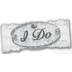 Ready for the wedding season? Now your flower girl or bridesmaids can get in the spirit of the day too! A white and silver glittered plaque with a crystal on a silver and white ribbon.