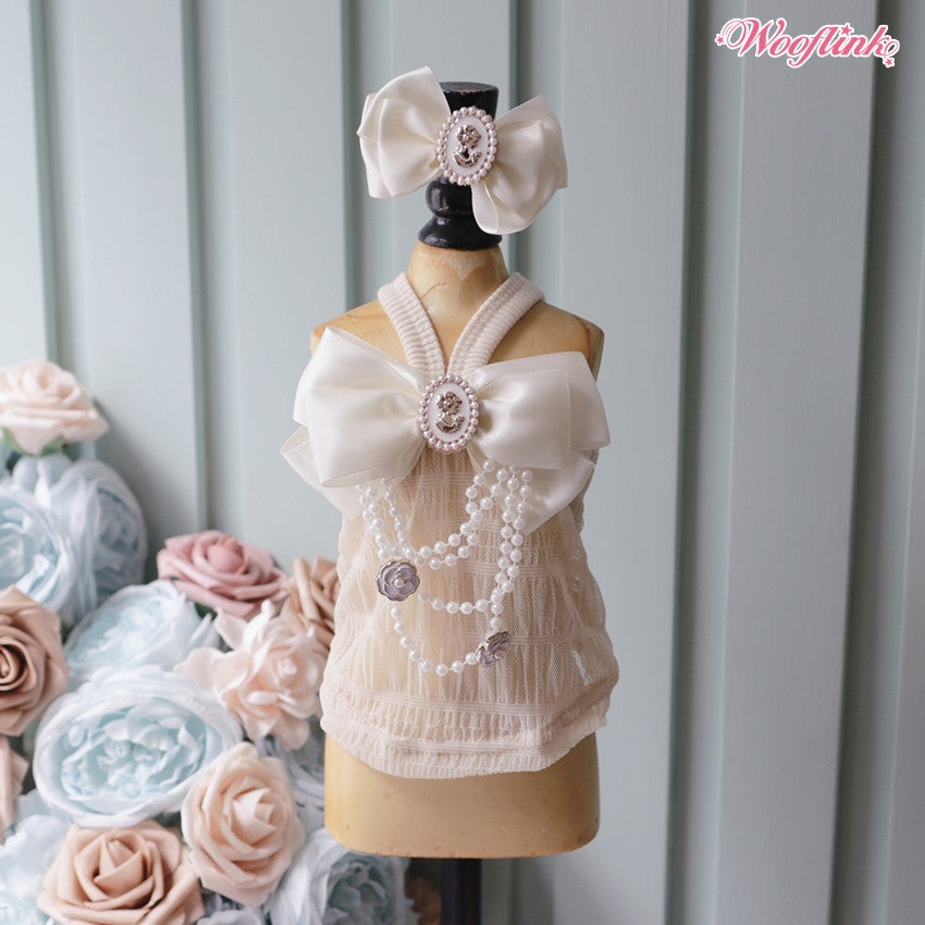 Luxurious large bow with pearls & roses