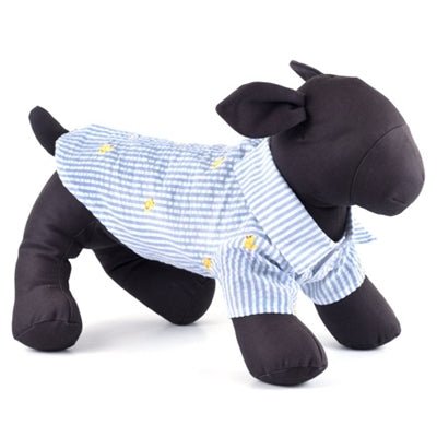 Fabulously stylish for the four-legged fashionista! Constructed of soft cotton fabric, our classic stripe seersucker shirts are sure to make a statement! Available in sizes XS-XXL for dogs 5 to 80 lbs.