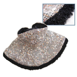 Adorable cape with hood, made with textured interwoven yarn and fabric lining. Accented with glittery black furry trims around the cape. A small D-Ring attached near the neck area to add on a "Klippo" charm or ID tag! (Each outfit comes in its own Klippo logo charm.)