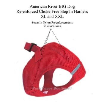 The American River Choke Free Dog Harness is the same Patented Design as our Ultra USA Choke Free Harness, but with a few different cosmetic changes.