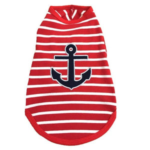 We received the anchor Tee in time for the 4th of July and everyone loved it . It fit perfect and it was very good quality . Sage made a hit on social media . Looking forward to buying a lot more . 🐾❤️