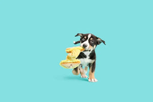 This grilled cheese dog toy will make your dog melt! Not to be cheesy, but these sammies love to stick together. Go ahead and tug on the stretchy bungee. Main Squeeze Cheese will always come together in the end with a squeak! Super Stretch 2 Squeakers Packed With Fluff