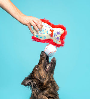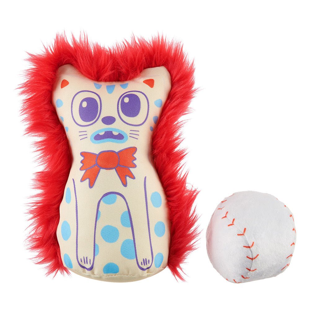 This fair game dog toy is all about settin' em up and pawing them down. Watch your pup go from canine to carny over Tippin' Kitten Knockdown's long & strong hair, squeakers, and crazy crinkle. Great for shredders and fetchers alike. Step right pup! Every dog's a winner!