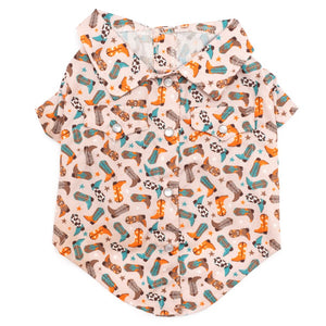 Fabulously stylish for the dapper dog! We make our designer dog shirts with quality fabrics and colorful, unique prints. Constructed of soft and durable polyester fabric, they're sure to make a statement! The perfect easy fashion staple for the discerning dog, it's comfortable to wear and is designed to provide an easy-to-dress fit with touch fastener closures on the belly and a faux back button-up placket. The high-cut stay dry belly keeps pups looking good while out on the move. Pair with our matching accessories, collars, and leashes, and we'll have your furry friend ready to look their best for every occasion. Machine washable for easy care.