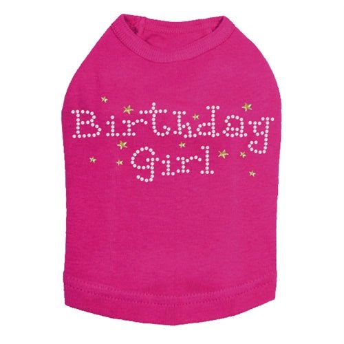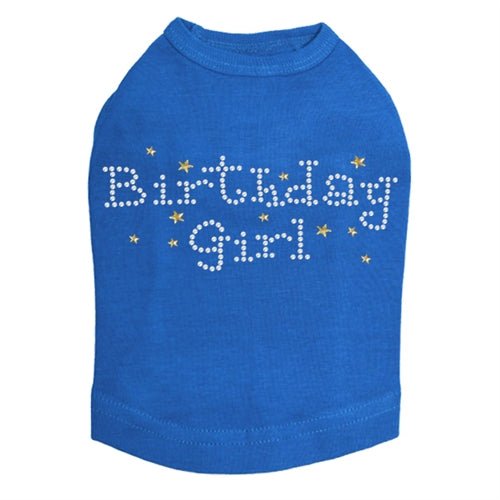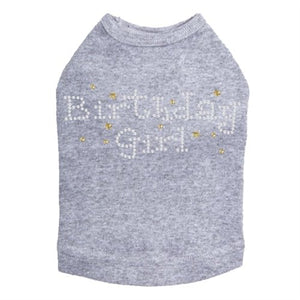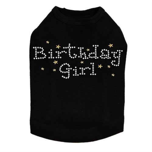 Birthday Girl with Gold Stars rhinestone dog tank for large and small dogs.